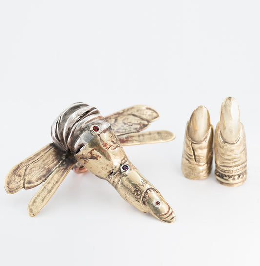 Ring in the shape of an dragonfly III. Brass, silver, bronze. / Pierscien w ksztalcie owada. Mosiadz ze srebrem..