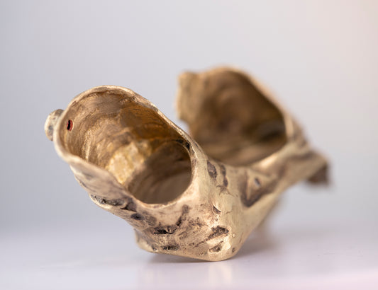 Ear pendant. Brass, zircons. / Wisior w kształcie ucha. Mosiadz, cyrkonie.