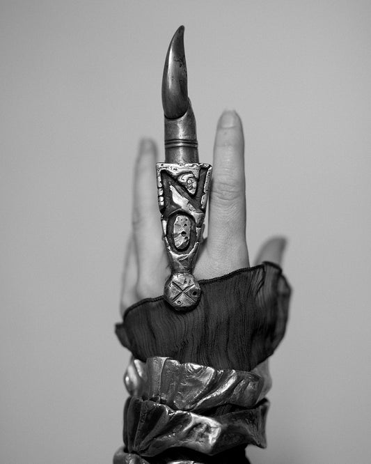 Tooth finger shape ring III. Silver. / Pierscien w ksztacie palca z zebami III. Srebro.