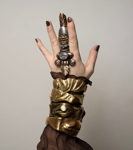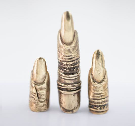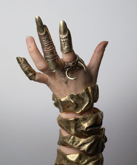 Tooth finger shape ring II, Brass. / Pierscien w ksztacie palca z zebami II. Mosiadz.