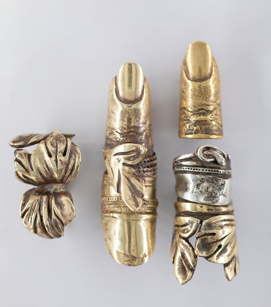 Raw Finger long nail. Sculpture. Chain. Brass and silver. / Pierscien palec z dlugim paznokciem. Mosiadz i srebro.