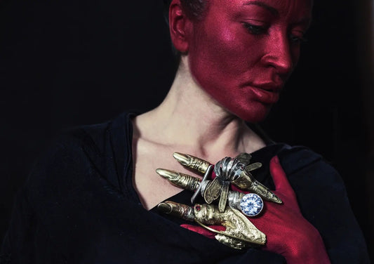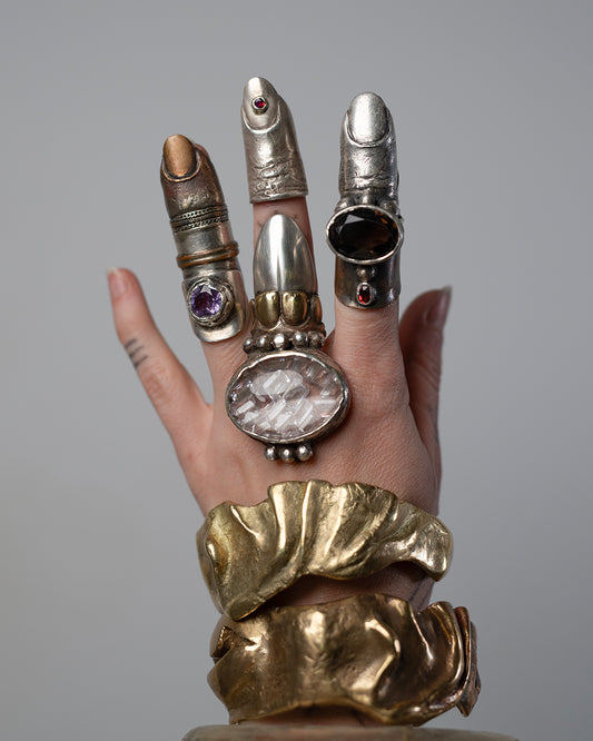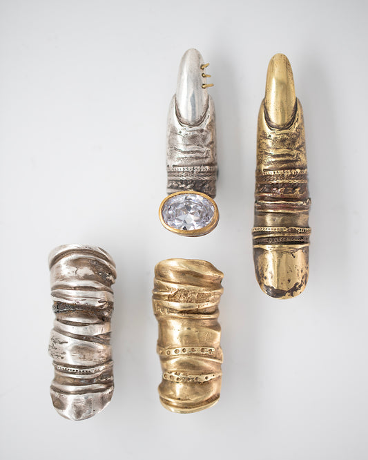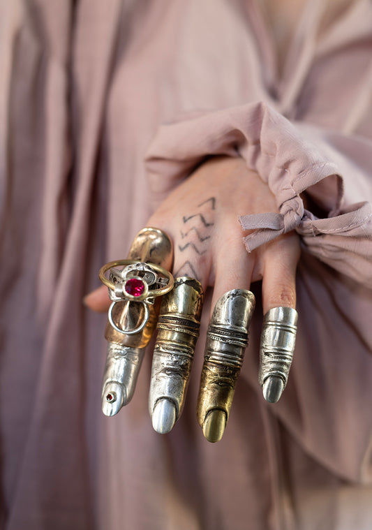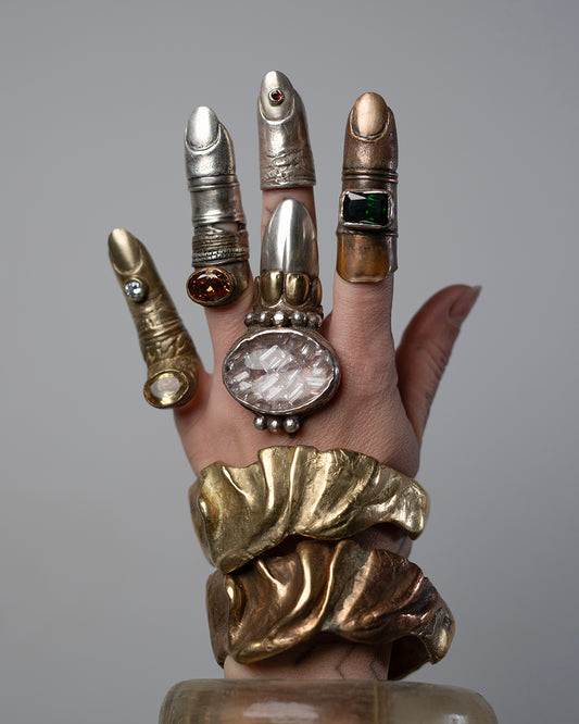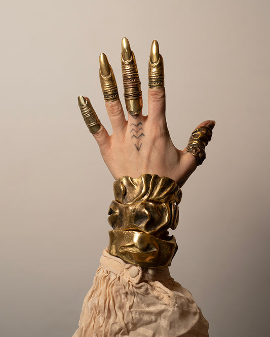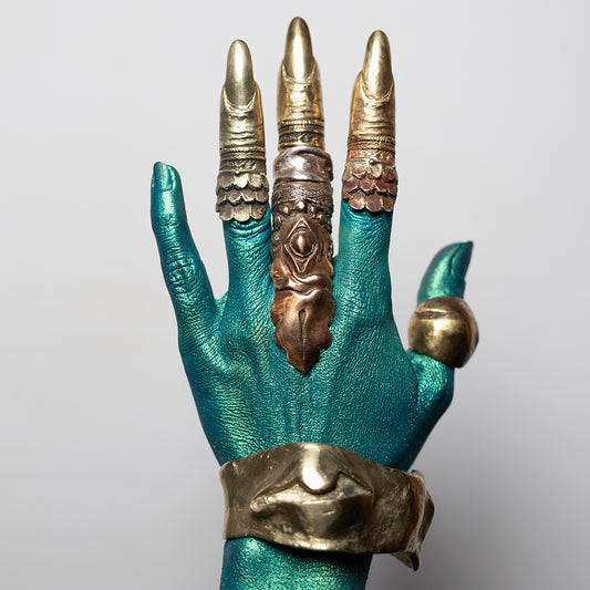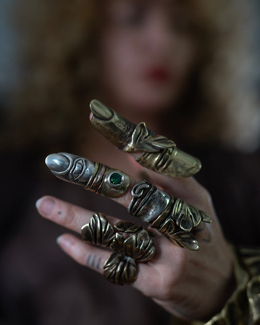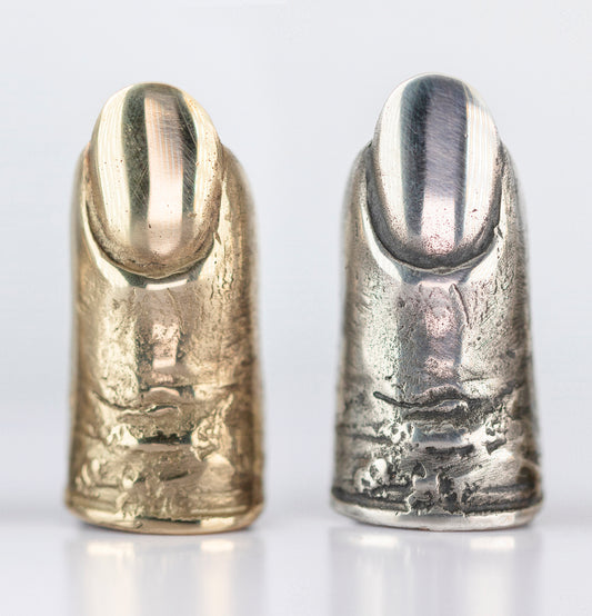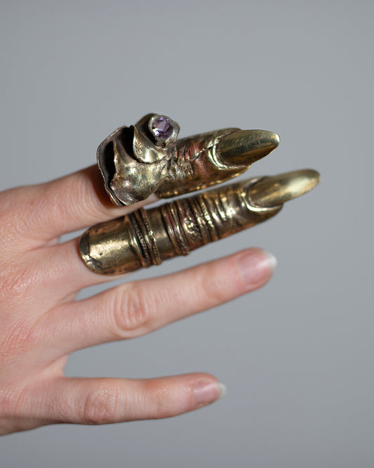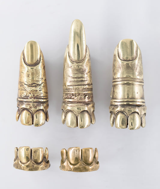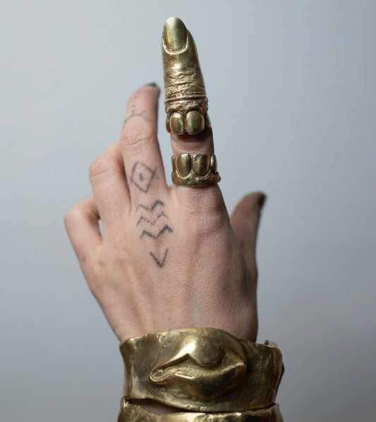 Tooth finger shape ring II, Brass. / Pierscien w ksztacie palca z zebami II. Mosiadz.