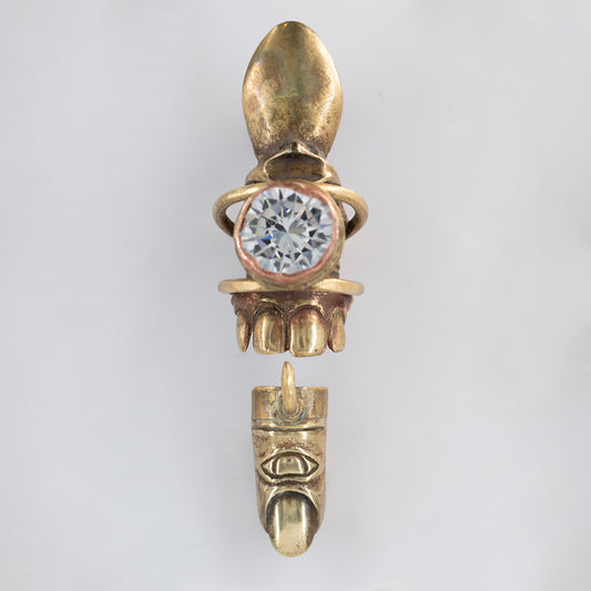 Finger ring with earring. Brass, silver, zircone. / Pierscien palec z kolczykami, mosiadz, srebro, cyrkonia.