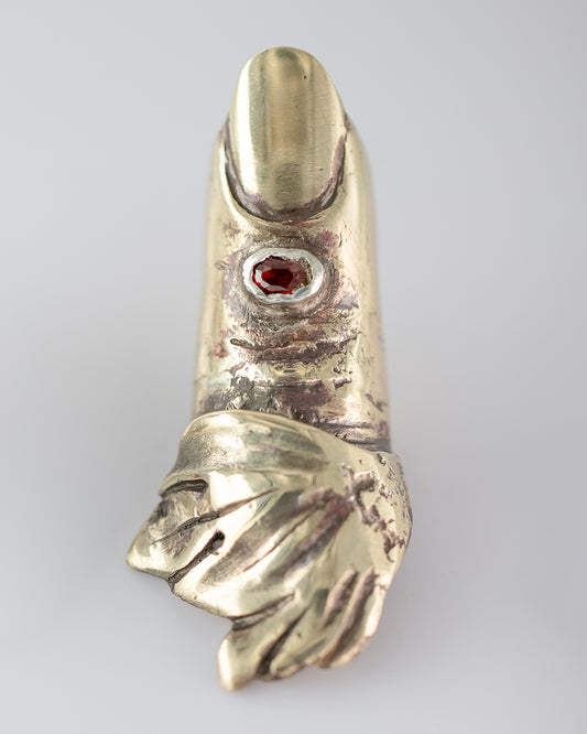 Alien ring. Silver, brass, garnet. / Pierscien kosmity. Srebro, mosiadz, kamien granat.