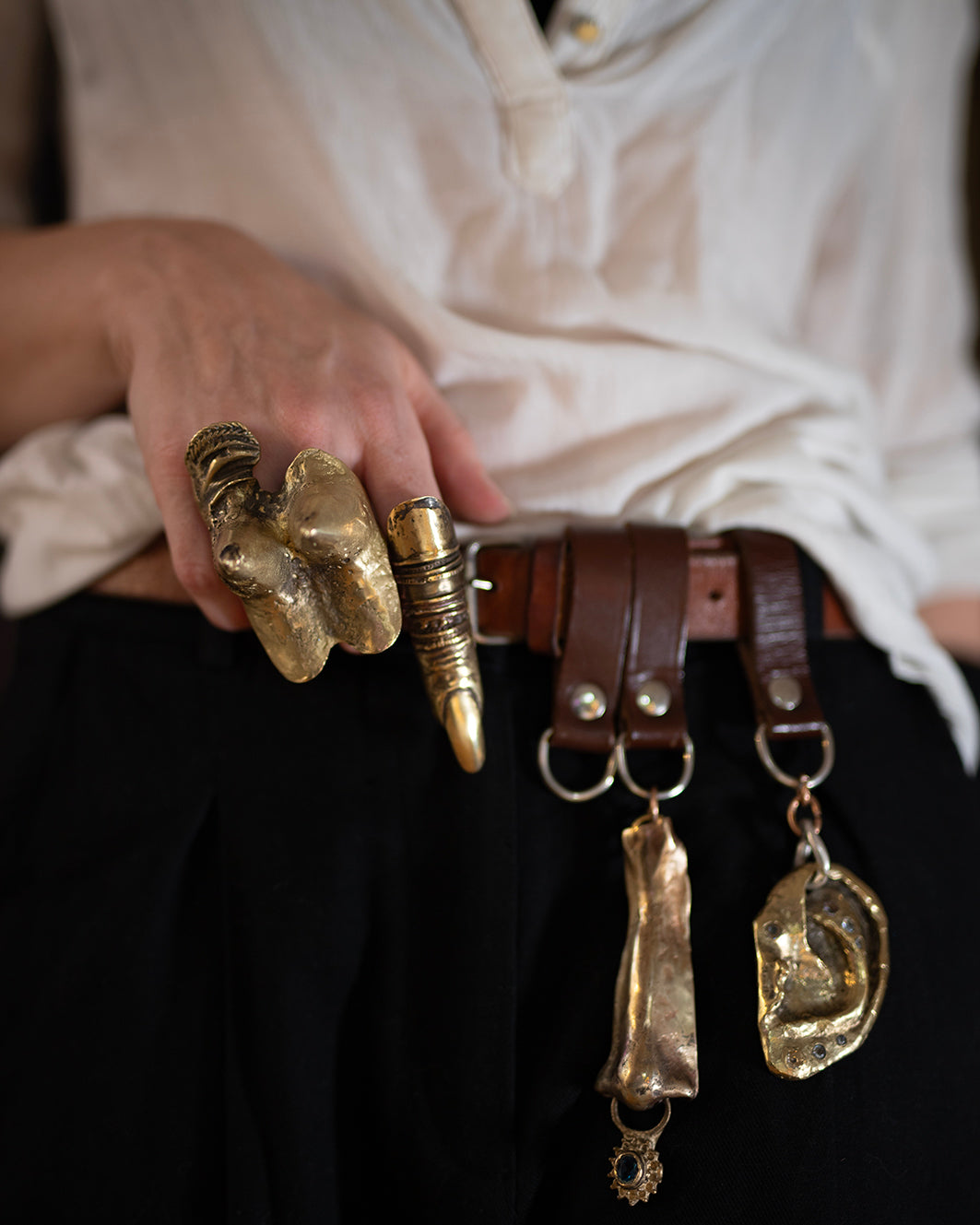 Ear pendant. Brass, zircons. / Wisior w kształcie ucha. Mosiadz, cyrkonie.